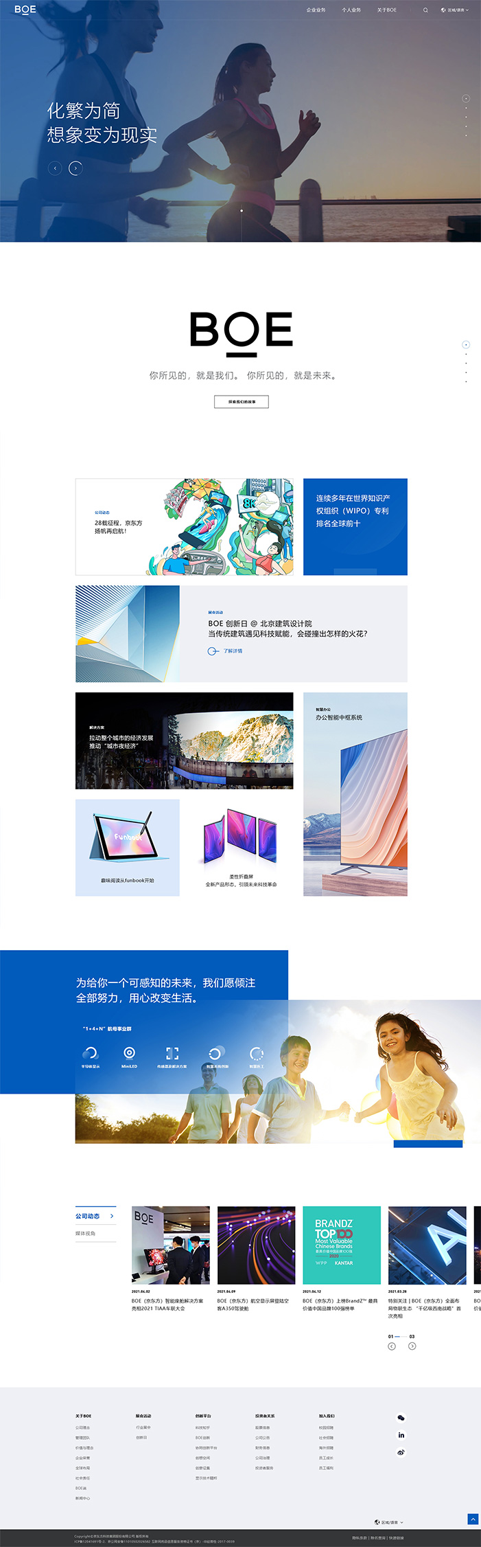 京東方官網(wǎng)整體配色方案用色十分克制,色彩明亮,富有活力。