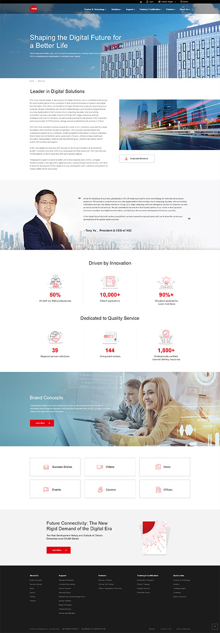新華三集團(tuán)(H3C)是國內(nèi)大型ICT廠商。在許多商用產(chǎn)品領(lǐng)域處于領(lǐng)導(dǎo)地位。2019年是新華三集團(tuán)的國際化元年。海外市場發(fā)展迅猛。因此,將企業(yè)形象從國內(nèi)大廠升級定位為跨國集團(tuán),已經(jīng)是H3C發(fā)展戰(zhàn)略的迫切需要。