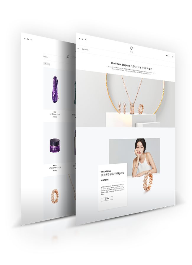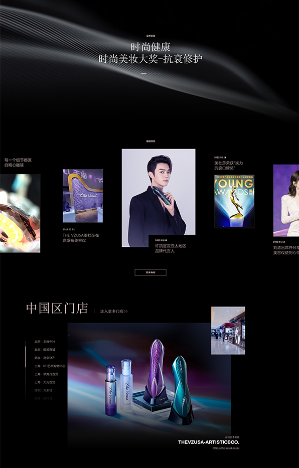 采用美杜莎把美麗帶給更多愛美的品牌理念,用綻放的花朵作為首屏的創(chuàng)意點,以及品牌產(chǎn)品使用昂貴、高端材料,的多維度展示。與其他大眾商品拉開距離的品牌定位需求以及人們追求新奇的心理特性。
