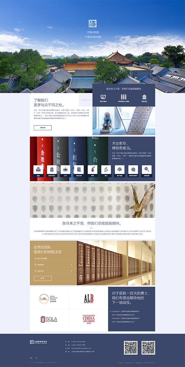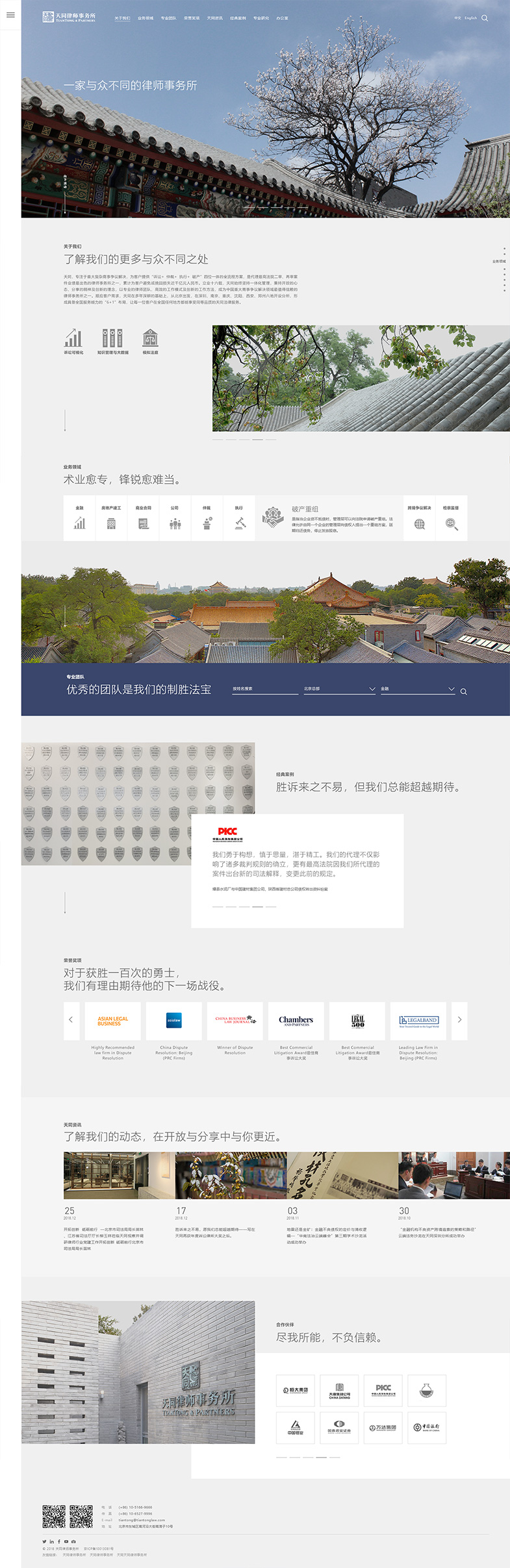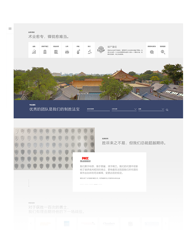 天同律所給人以深刻印象的,不止是那座紫禁城邊古韻風雅的傳統(tǒng)四合院,還有那些前沿領先的信息科技工具和運營成果。這些特點的疊加使天同律所官網(wǎng)的形象設計策略更加與眾不同,我們幫助擁有高顏值+技術流的天同律所在眾多律所品牌中脫穎而出。